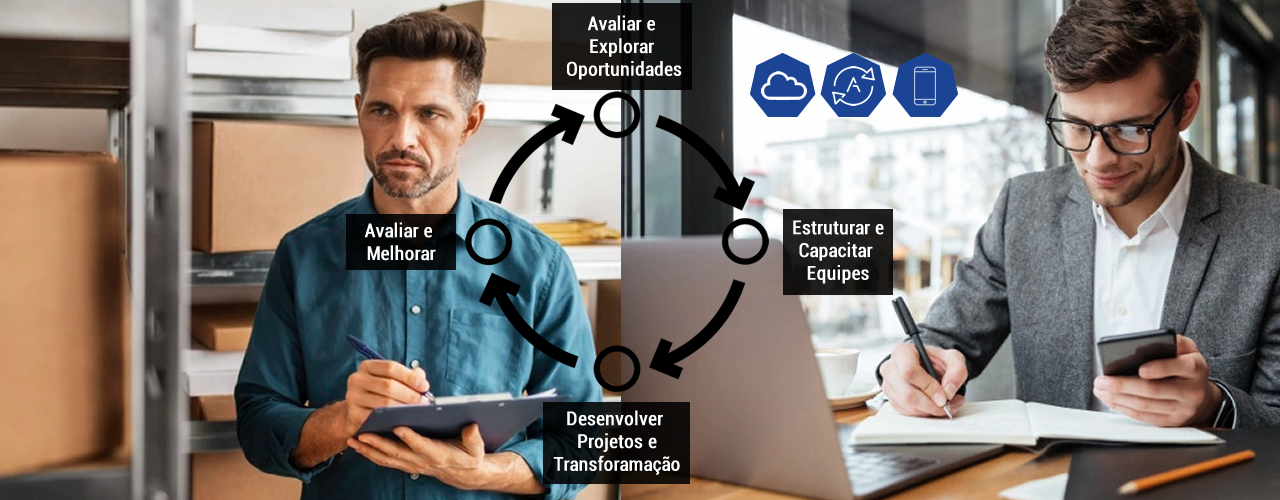 A transformação digital causa toda uma transformação cultural na sua empresa e para mudar uma cultura dentro de uma empresa é preciso ter um objetivo bem definido, muita organização e trabalho contínuo, o nosso trabalho é implantar as metologias, ajudar encontrar as melhores ferramentas, acompanhar e gerar feedbacks constantes, para isso contamos com profissionais com anos de experiência de mercado e uma metodologia já testada além de toda uma suíte de soluções que podem ser implantadas na sua operação.
